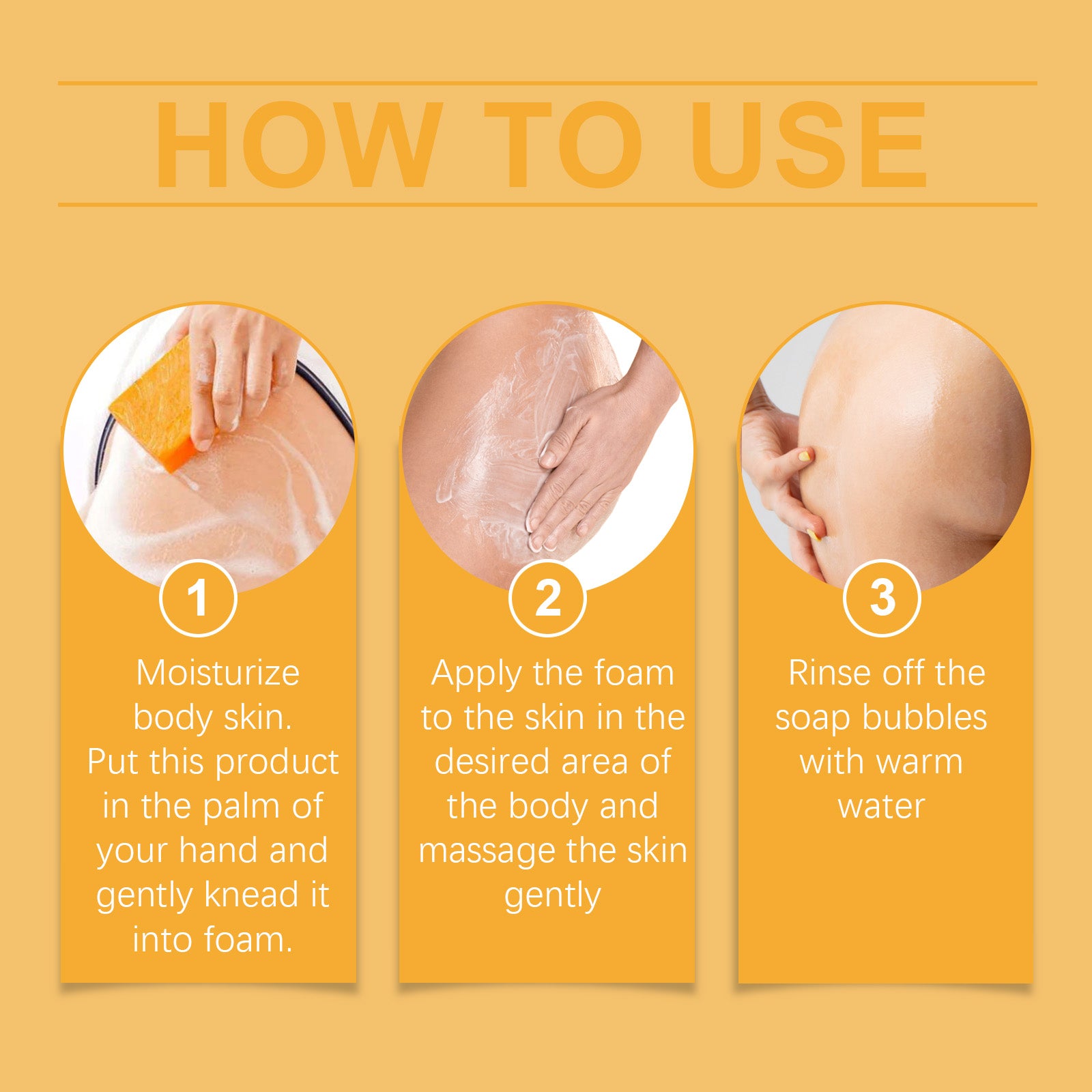 Our orange peel moisturizing body soap contains niacinamide mononucleotide, collagen, shea butter. It can even out skin tone and improve skin luster. Enhance elasticity and improve firmness. Deep nourishing and moisturizing. Its application method is very simple: 1. Moisturize the body skin. Place this product in the palm of your hand and gently lather it. 2. Apply the foam to the desired parts of the body and gently massage; 3. Rinse off the soap foam with warm water. Provides long-lasting moisture and leaves skin soft and smooth. Mild formula, suitable for all skin types, non-irritating.